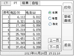 智能互感器測試儀的勵磁數據