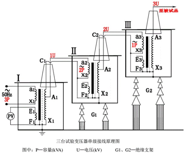 單臺試驗變壓器的電壓不會太高,當試驗需要較高的試驗電壓時,常采用幾臺變壓器串接的方法來提高試驗電壓。